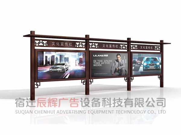 宣傳欄是一種VI應(yīng)用,是組織或企業(yè)單位等進(jìn)行自我宣傳的有效手段,常被應(yīng)用于街道,工廠等公共場所;一般采用不銹鋼為框架,鋼化玻璃或者耐力板為面板,鋁合金為頂棚,面板可以打開更換宣傳畫面。現(xiàn)如今,宣傳欄廣泛應(yīng)用于學(xué)校、小區(qū)、會議館、展廳等各個場地。